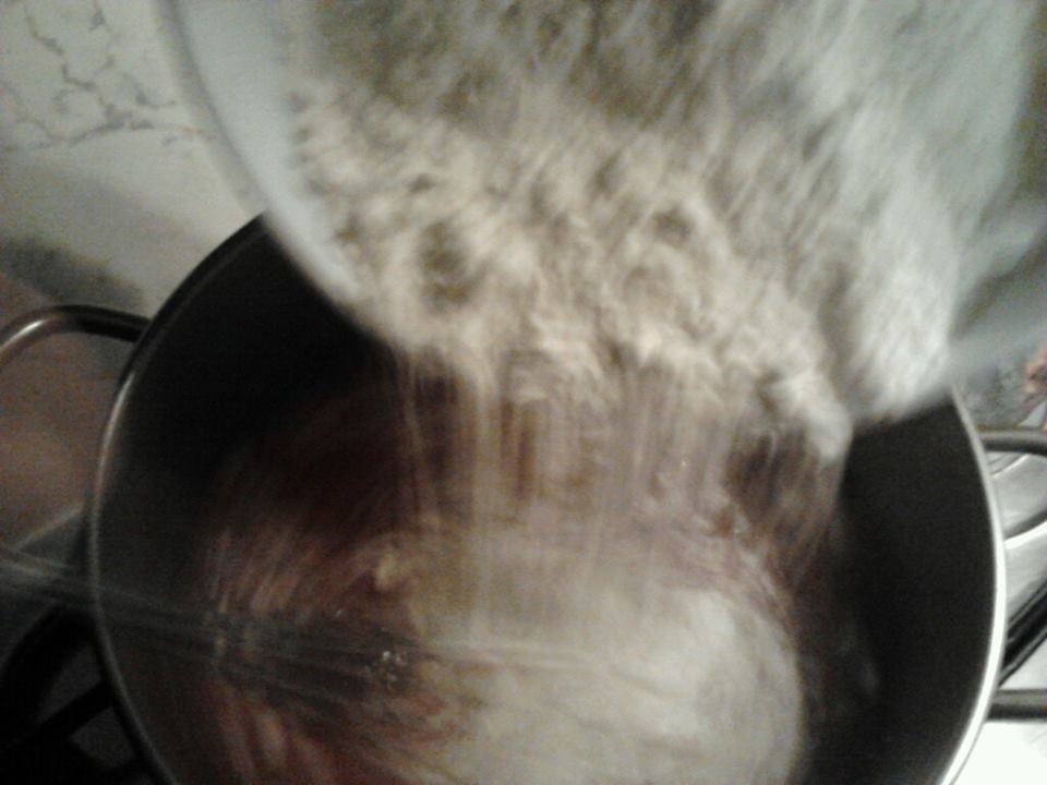 Versare il tutto nella pentola e girare con la frusta